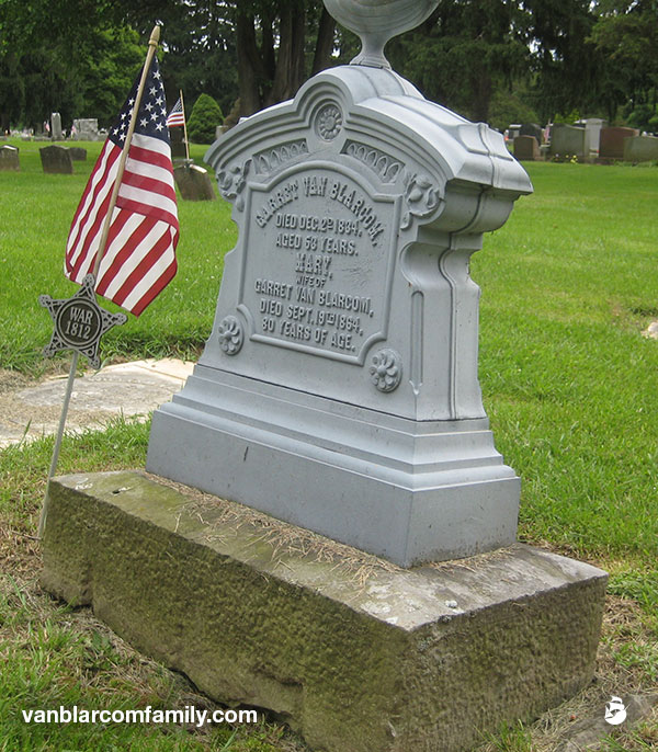 Garret Van Blarcom’s will was filed on December 16, 1834, and named his wife Mary and son Samuel as executors. Witnesses listed were Elias L’Hommedieu, Jame B. Case, and George Buckley. He is buried at North Hardyston Cemetery, Hamburg, Sussex, New Jersey. An inscription on his headstone reads “Blessed are the dead which die in the lord.”