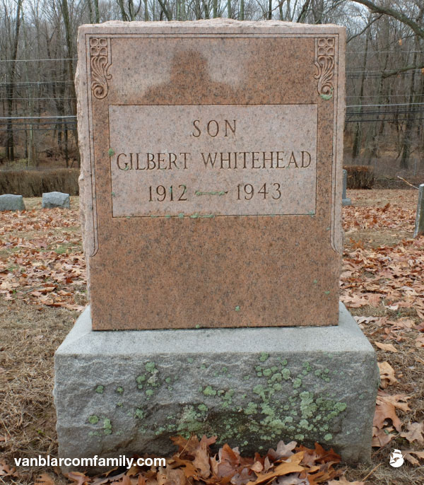 Gilbert was the third Whitehead boy to die in a tragic auto accident. According to news articles, Gilbert was riding in the back of a pickup truck holding onto a cow that was being delivered to auction. When the truck took a curve, the cow lunged and Gilbert was thrown from the truck fracturing his skull.