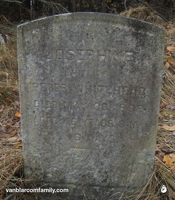 Josephine married Jacob T Whitehead on March 5, 1864 and together they had 11 children. Jacob suffered an untimely death in 1884, and in a strange turn of events, Josephine married Jacob’s youngest brother Peter G Whitehead 5 years later. Her headstone at Saums states “Josephine Wife of Peter Whitehead.”