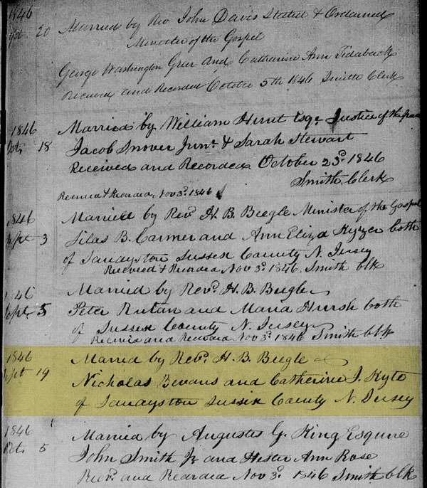 Born: 18 Jun 1827 in Bevans, Sussex, New Jersey